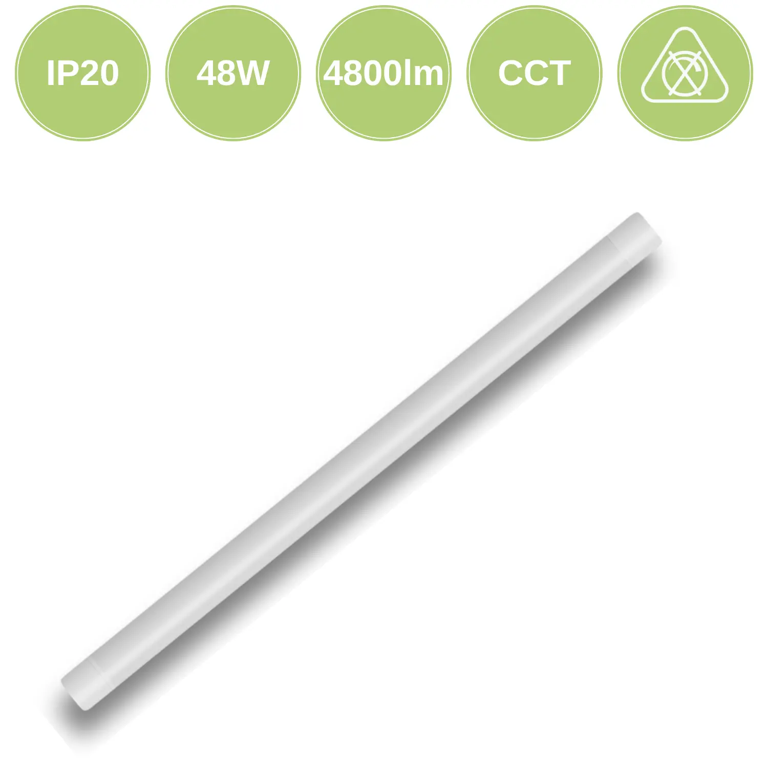 Den här kraftfulla LED-armaturen är en praktisk lösning för dig som vill ha hög prestanda i kombination med låg energiförbrukning. Med en uteffekt på 48 W och en ljusstyrka på 4800 lumen ger armaturen ett starkt och jämnt ljus, perfekt för arbetsytor där belysningen måste vara tillförlitlig och jämn. Den är utformad med en färgåtergivning på Ra≥80, vilket ger naturliga färger i miljön, och den erbjuder tre olika färgtemperaturer (CCT): 3000K, 4000K och 6500K.Utrymmesbesparande och funktionell led-armatur 120 cm