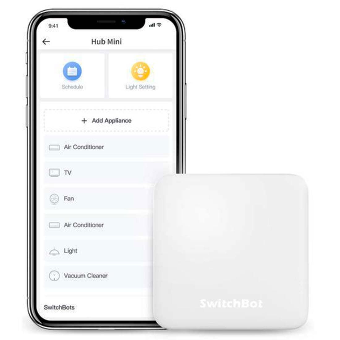 Med denna geniala Hub Mini kan du ta dina SwitchBot-enheter till nästa nivå. Trots sin storlek är denna SwitchBot Hub Mini en kraftfull allt-i-ett-kontroller för dina enheter. Med inbyggd Bluetooth, WiFi och Infraröd (IR) kan denna smarta hubb anslutas till en mängd enheter. Denna Hub Mini kan fungera som en fjärrkontroll för ett brett utbud av enheter, såsom tv-apparater, luftkonditionering, radio och liknande enheter som använder IR-fjärrkontroller. Superenkel anslutning där denna Smart hub imiterar signalen från originalfjärrkontrollen. Du måste även använda denna Hub Mini om du vill kunna använda dina SwitchBot-produkter via WiFi och i samband med 3. parts tjänster som Google Home, Alexa, Siri och liknande.