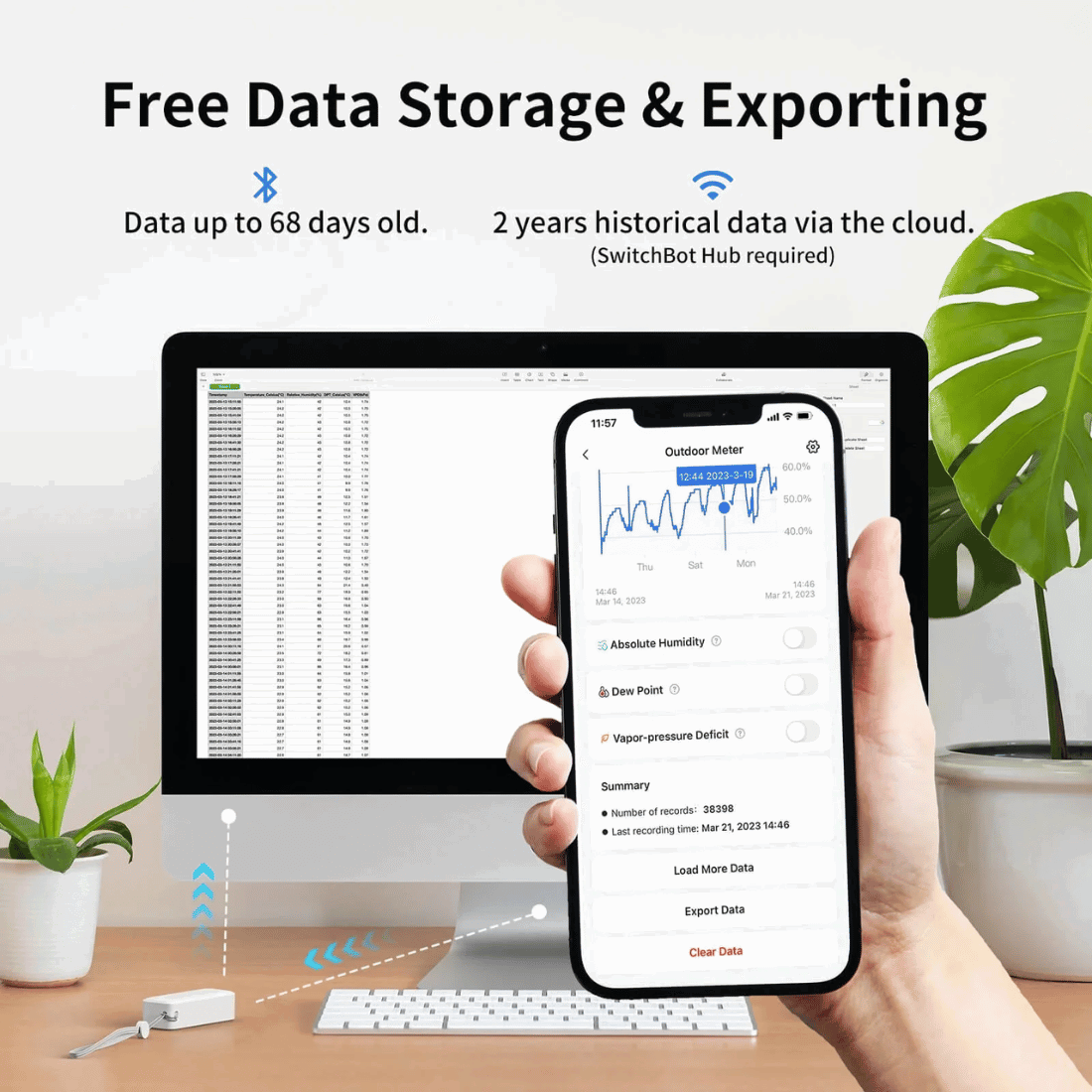SwitchBot Meter kombinerar precis temperatur- och fuktövervakning med smarta notifikationer. Den är IP65 certifierad, vilket gör den idealisk för både inomhus- och utomhusbruk.