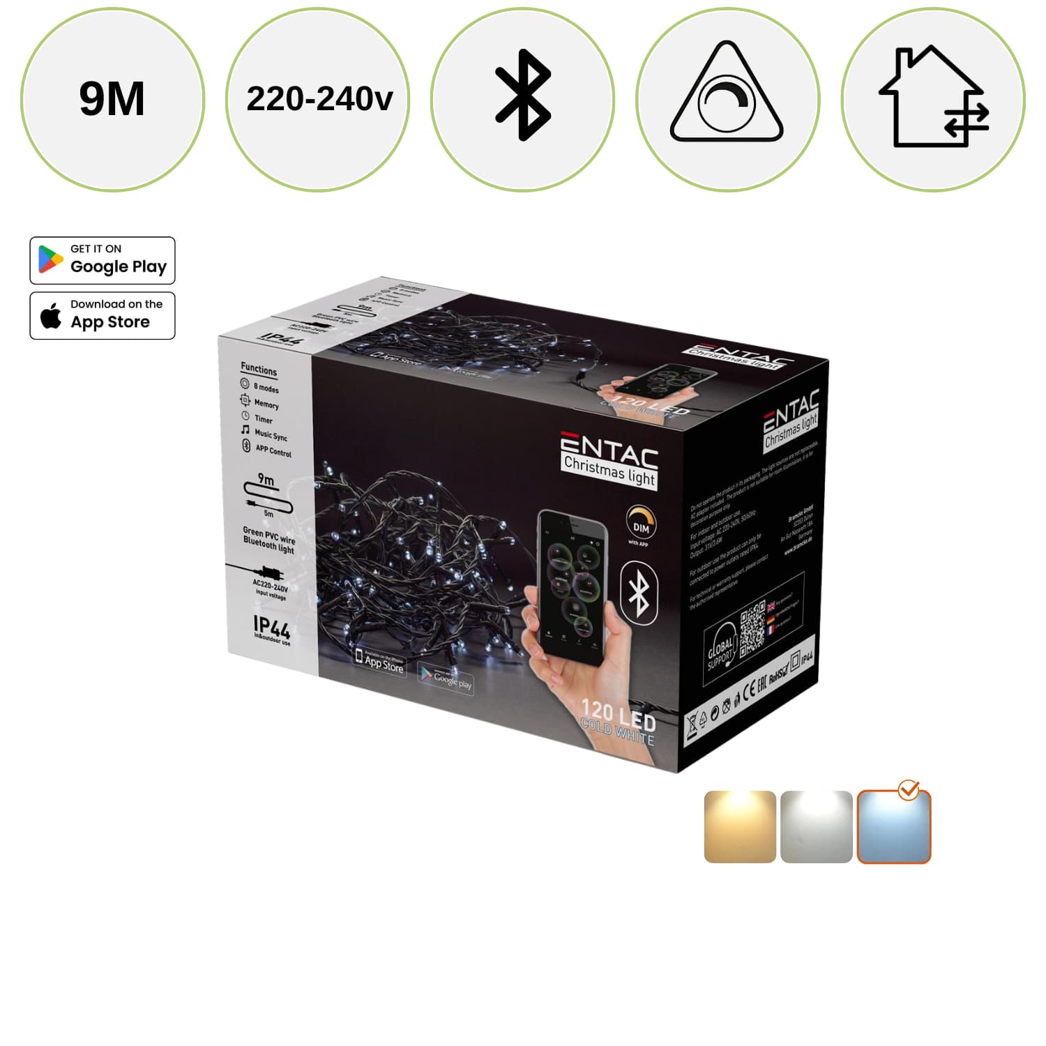 App-styrd LED julbelysning utomhus | 9 m ljusslinga | 6400K | 8 ljuslägen | IP44 |