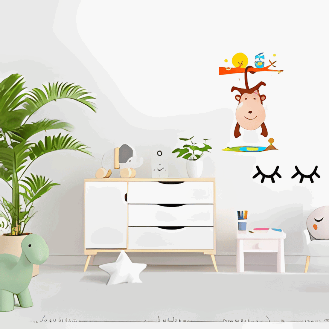 Väggklistermärken och barnlampor hjälper till att skapa vacker väggdekoration