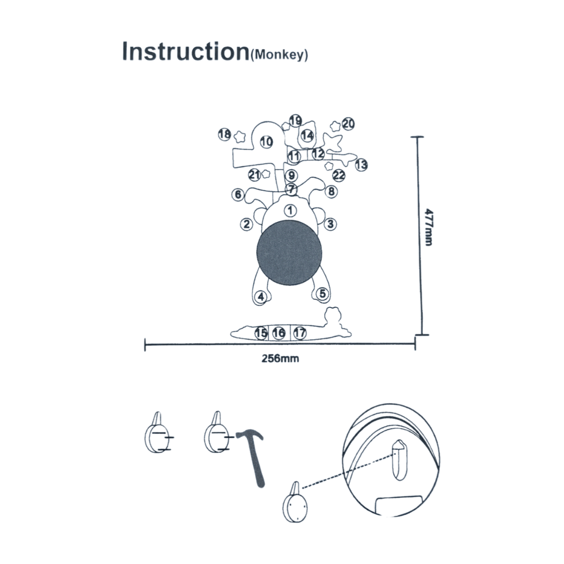 UPPMÄRKSAMHET! det medföljande fästet för väggen rekommenderas endast för mjuka material, som t.ex gipsväggar. Alternativt kommer du att kunna sätta en spik eller skruv i väggen själv