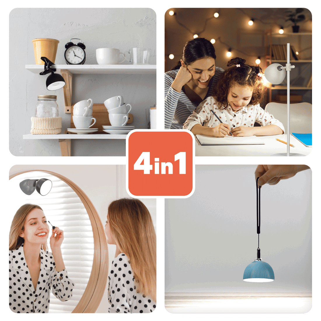 Denne trådløse bordlampe er designet til at imødekomme dine behov med dens alsidige anvendelsesmuligheder. Med fire forskellige installations muligheder kan du bruge den som bordlampe på den medfølgende base, montere den som væglampe med det medfølgende beslag, eller fastgøre den med de medfølgende klemme eller snor. Den kan placeres på dit skrivebord som en effektiv skrivebordslampe, eller den kan lyse dit sengebord som en stilfuld sengelampe. Denne bordlampe uden ledning giver dig friheden til at placere den, hvor du ønsker, uden at bekymre dig om stikkontakter.