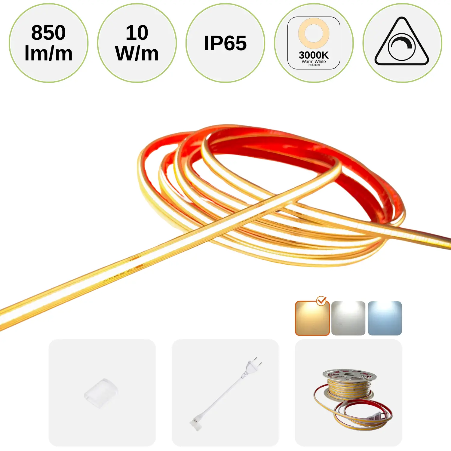 COB LED STRIP 230V | 50m Set | 4000K | 850lm/m | 10W/m | COB10