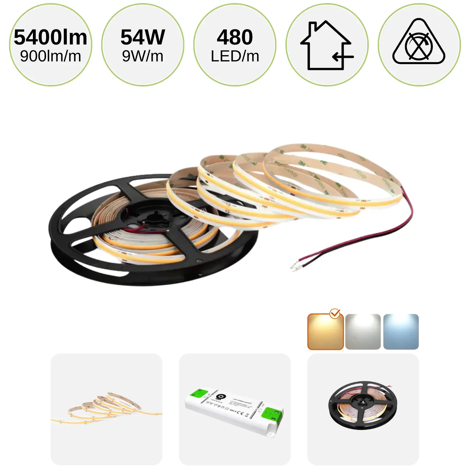 COB LED Strip Set | 6m | 3000K | 9W/m | 8mm | Inkl. Drivdon