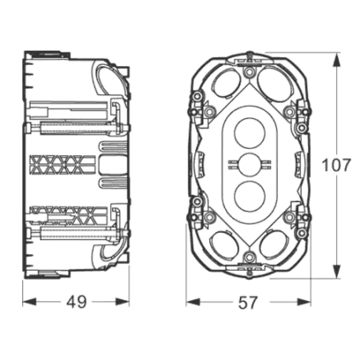 Med Fuga Air främre burk får du enkel installation och flexibilitet. Burken kan monteras med olika ramtyper, inklusive Teknisk monteringsram och designramar som CHOICE, PURE och SOFT. Den kan även anpassas till väggtjocklekar från 9 till 40 mm, vilket ger dig stor flexibilitet i dina installationsmöjligheter. Vid montering av insatser i lådan kan du välja mellan flera metoder, bland annat användandet av klobitar, skruvar i fronten av den Tekniska monteringsramen och skruvtorn i botten.