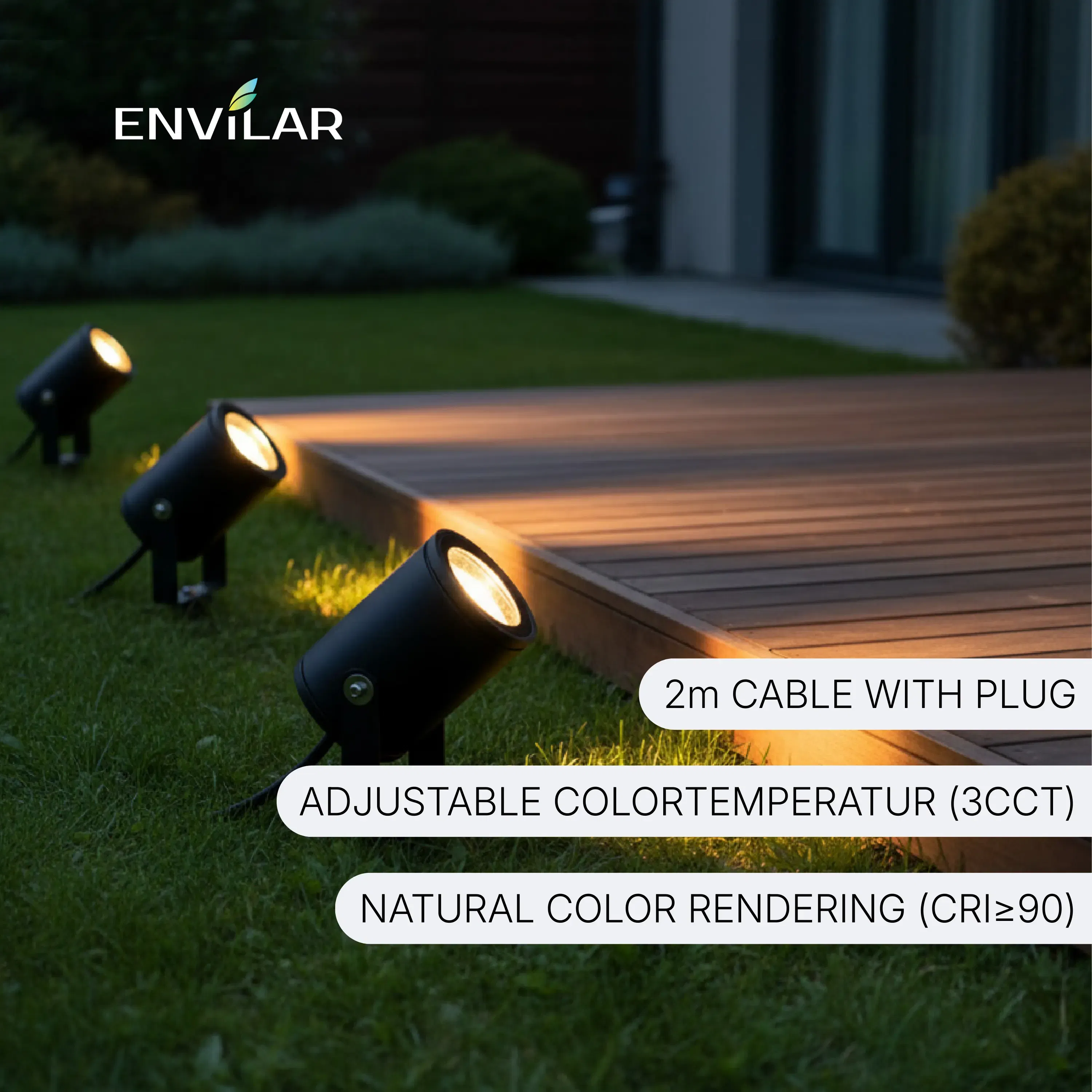 ENVILAR 2-pack trädgårdsstrålkastare är en enkel och effektiv lösning för utomhusbelysning. Med plug & play-installation, justerbart ljus och robust konstruktion får du en flexibel trädgårdsbelysning som skapar stämning och ökar tryggheten året runt.