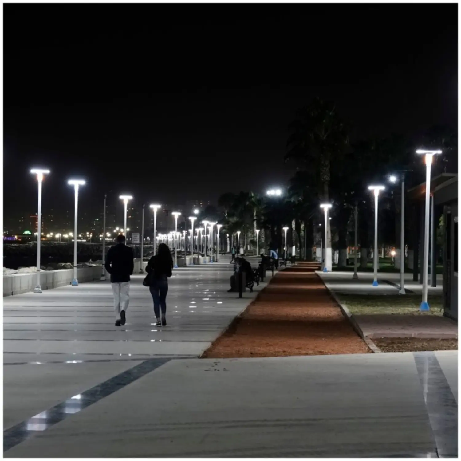 Inbyggd solpanel 15 Wp och LiFePO4-batteri 3,2 V / 15 Ah säkerställer energiförsörjningen utomhus. Lämplig för parkstråk, uppfarter, rekreationsytor och bostadsmiljöer.