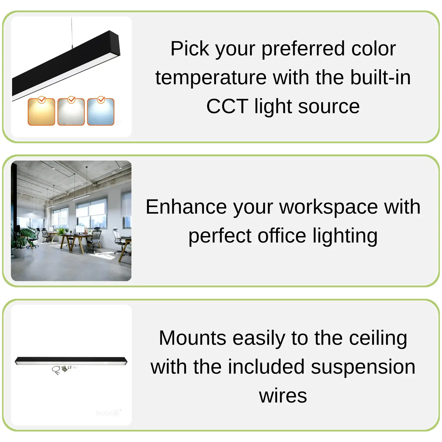 Uppgradera ditt kontor med den stilrena och effektiva Koline taklampan på 120 cm. Med justerbar färgtemperatur, stark ljusstyrka och enkel montering är denna LED-lösning både praktisk och snygg – perfekt för moderna arbetsmiljöer.