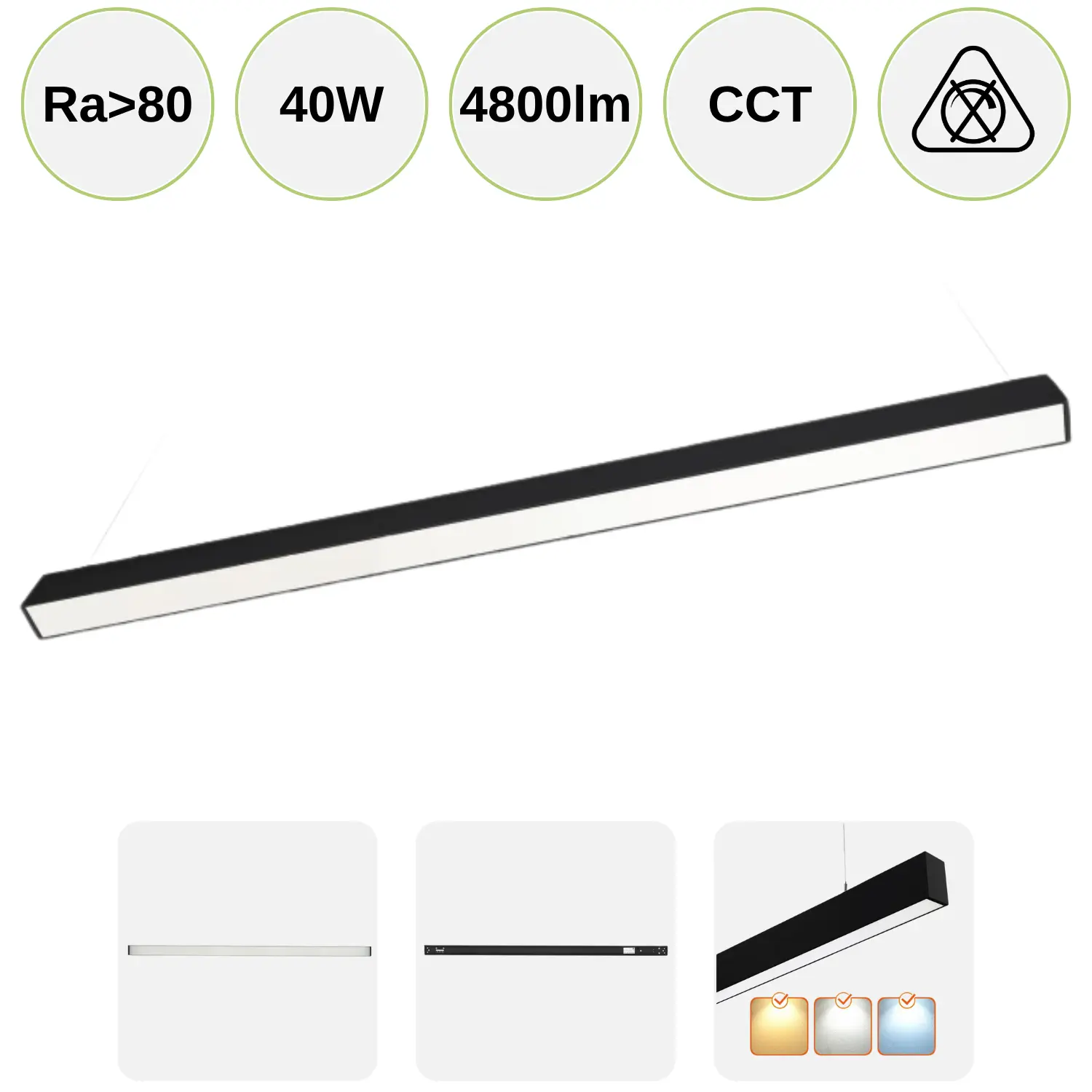 Kontors Taklampa 120 cm | CCT | 4800 lm | 40 W | KOLINE K2 | Svart