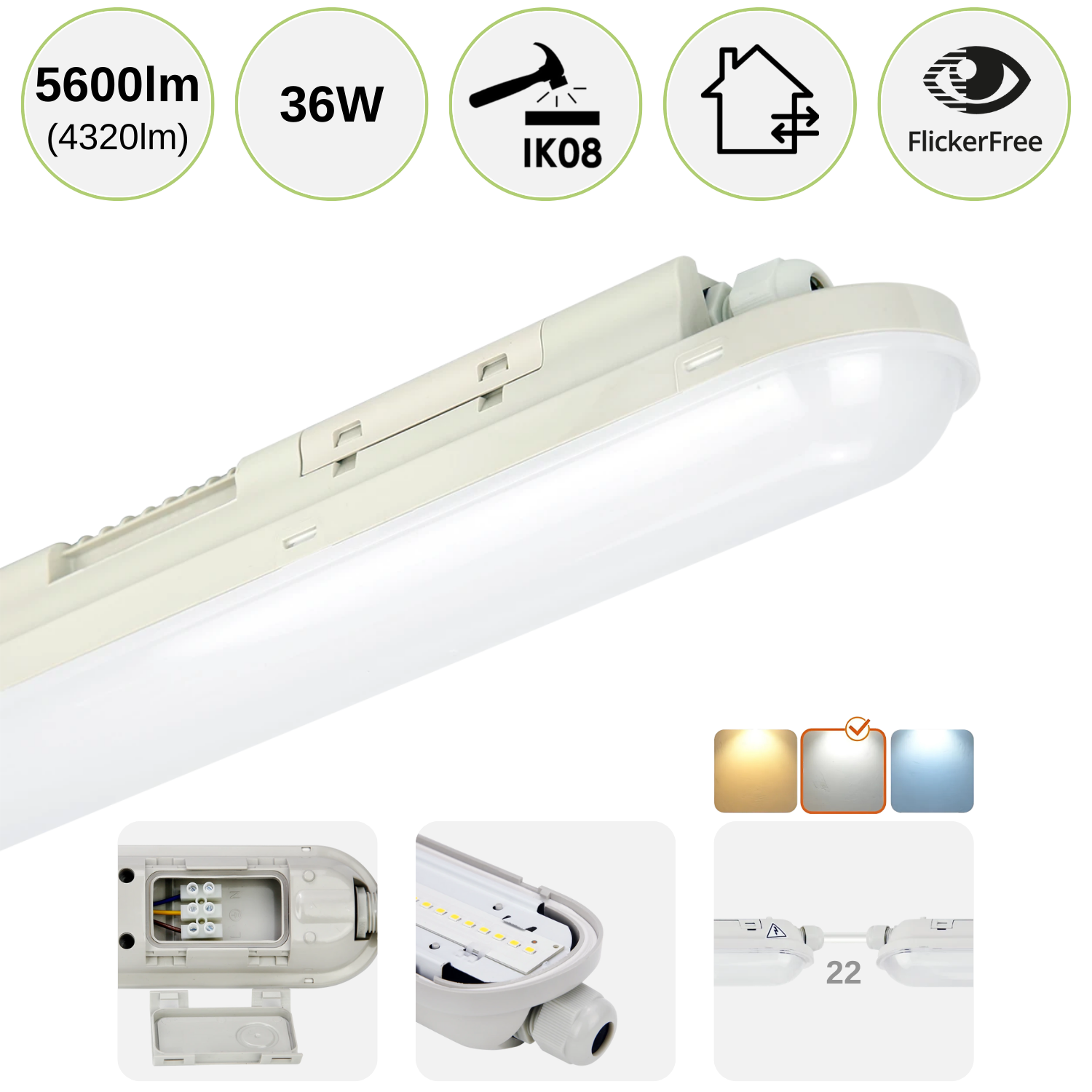 LED Armatur 120 cm | 6-pack | 4000 K | 156 lm/W | 36 W | IP65 | SolidLine | Vidarekopplad