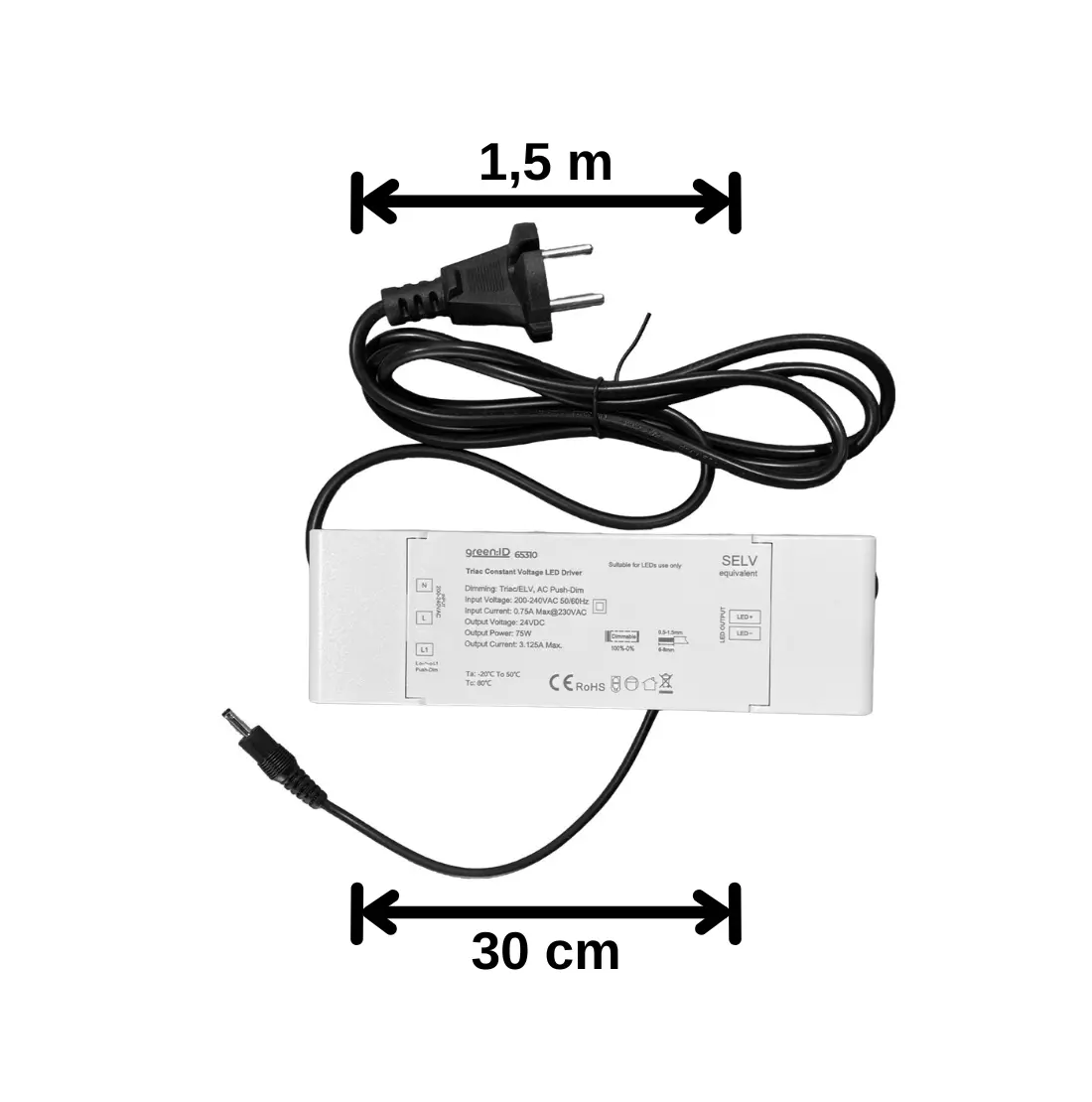 | Kontakttyp(er): | DC 3.5 x 1.35 mm, Dupont, Type E/F stik (CEE 7/7) |