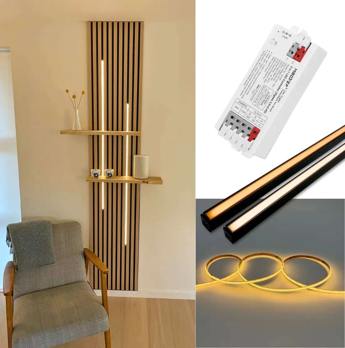 Denna kompletta lösning för akustikpanelsbelysning innehåller 2 set som ger dig en elegant och jämn ljuseffekt utan synliga punkter. Med två dimbara COB LED strips med CCT (justerbar färgtemperatur), två svarta LED profiler och en Zigbee kontroller får du full kontroll och enkel integration i ditt smarta hem. Perfekt för både hem och professionella miljöer där kvalitet och flexibilitet är i fokus.