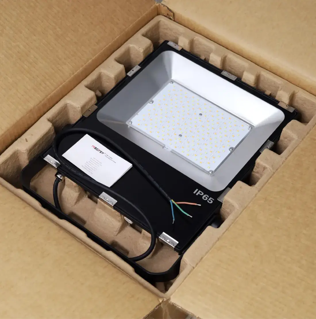 Mer information "LED Projektor | 100W | 10.000lm | RGB+CCT | IP65 | Zigbee & RF"