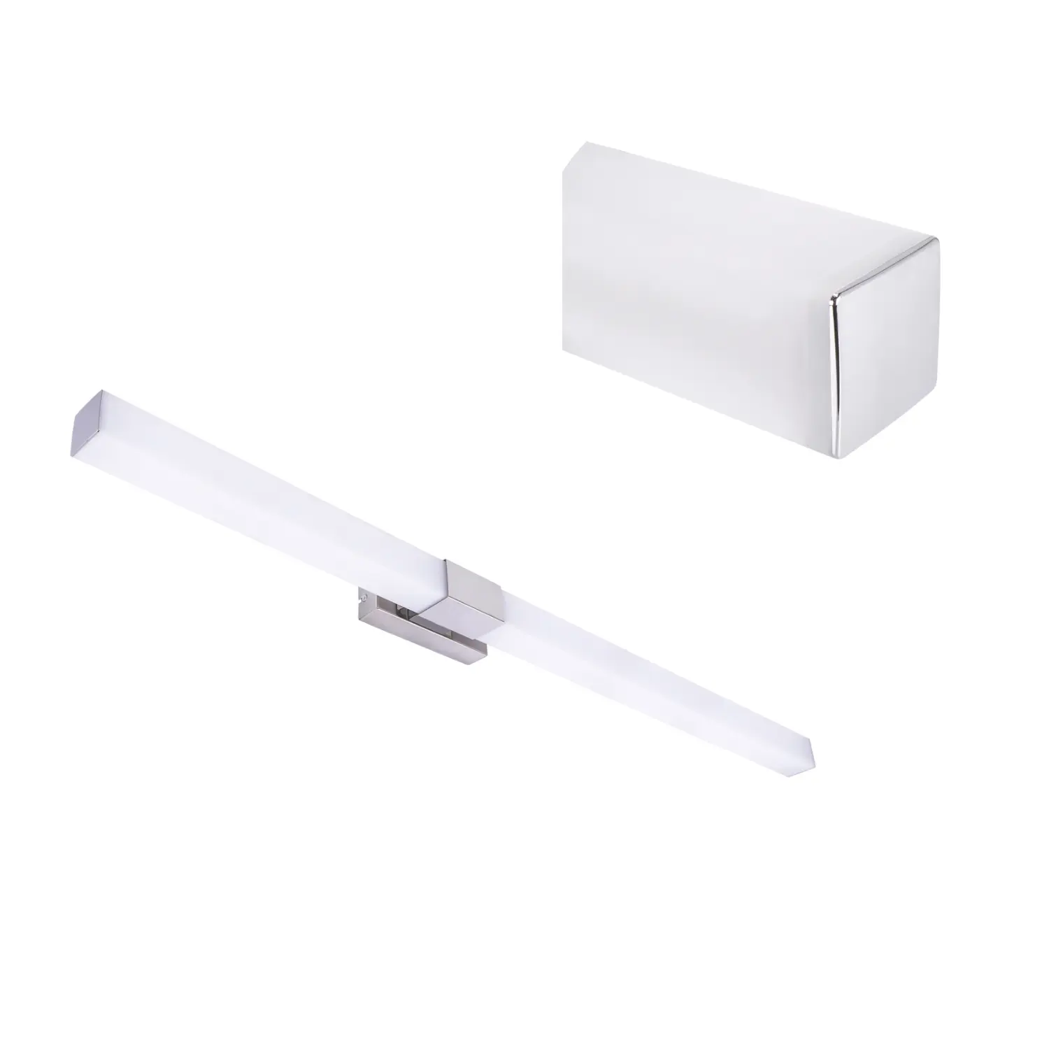 Elegant badrumslampa i krom som ger ett klart och behagligt neutralvitt ljus till spegel och bänkskiva. IP44-skyddet gör den lämplig för områden med hög luftfuktighet och den effektiva SMD LED-lampan ger mycket ljus med låg förbrukning.
