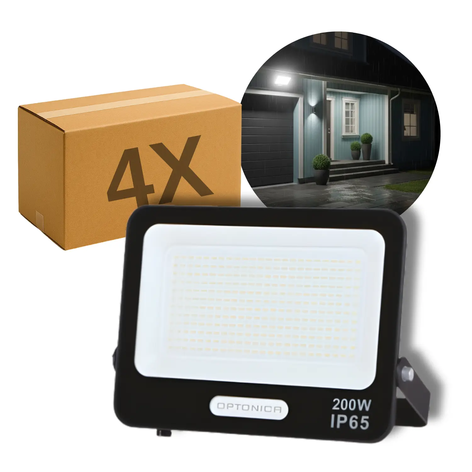 4-pack utomhusstrålkastare som ger kraftfull och jämn belysning med 18.000 lumen per strålkastare. Denna 200 W-modell är idealisk för innergårdar, fasader, parkeringshus eller andra utomhusområden där du behöver tillförlitlig och stark belysning. Strålkastarna har en bred spridningsvinkel på 120°, vilket ger en jämn täckning av stora ytor. Den neutralt vita ljusfärgen ger ett behagligt och naturligt ljus som gör omgivningen tydlig utan att vara skarp.