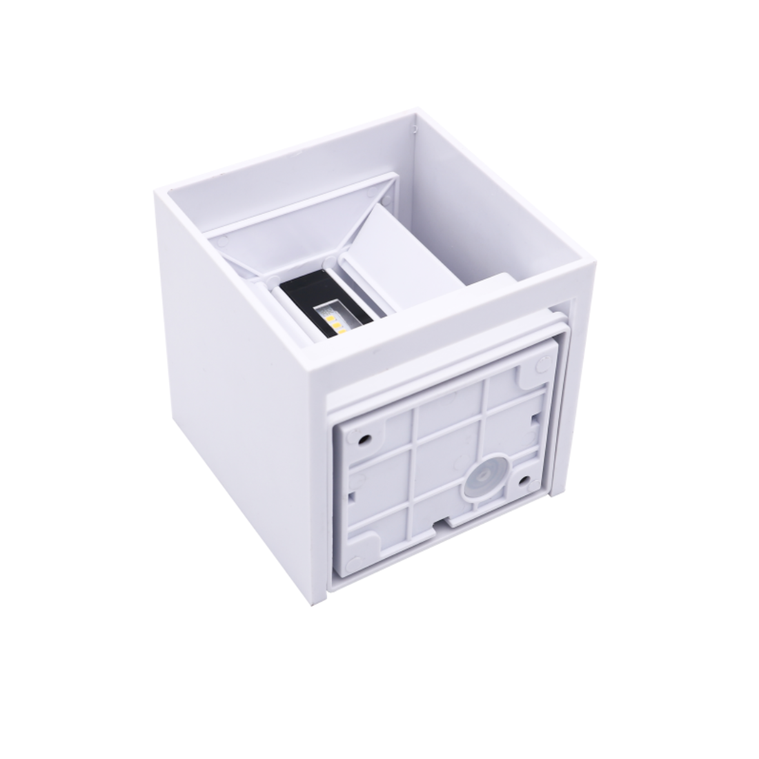 Den kvadratiska designen och den vita finishen gör lampan till ett elegant val för alla utomhusmiljöer. Den justerbara ljusvinkeln ger möjlighet att anpassa belysningen, medan LED-teknologin säkerställer låg energiförbrukning och hög ljusstyrka utan kompromisser.