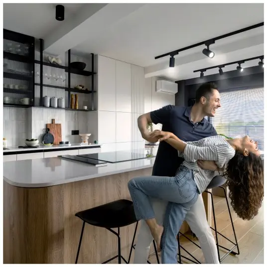 NEXTRACK GO är en smart och komplett taklampelösning som passar perfekt både i hemmet och i kommersiella lokaler. Setet består av en 1 meter skena, 4 justerbara GU10-spotlights, en anslutning och en ändkåpa. Varje lampa kan roteras 360° och vinklas upp till 90°, vilket ger dig full kontroll över ljusets riktning. Eftersom glödlampor inte ingår kan du själv välja de GU10 LED-lampor som passar bäst för ditt behov, upp till 12W per lampa.