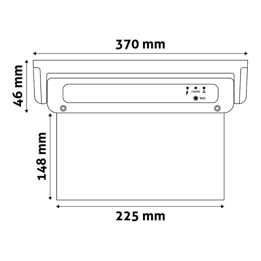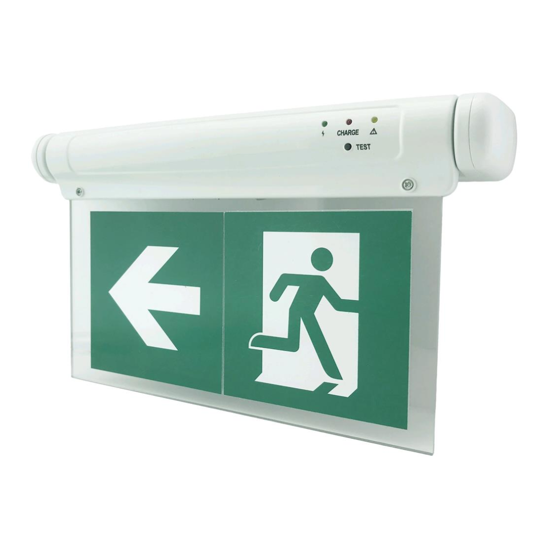 Denna nödutgångsskylt är utrustad med ett Ni-Cd 3-6V, 500mAh batteri, vilket ger upp till 3timmars drift vid strömavbrott. Skylten laddas helt på 24 timmar, vilket säkerställer att den alltid är redo att användas vid en nödsituation.