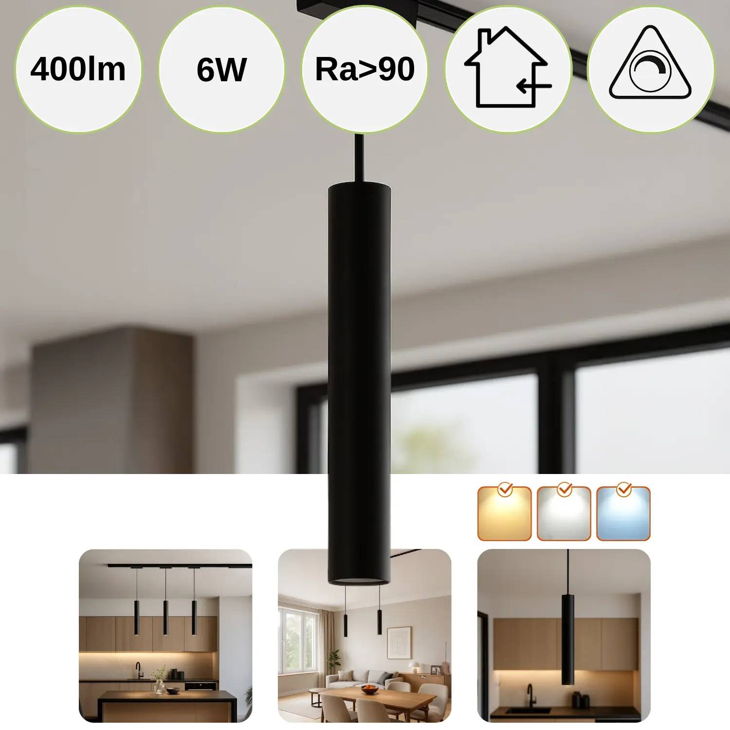 Pendellampa för SlimTrack strömskenesystem | 24V | CCT | 400lm | 6W | Svart
