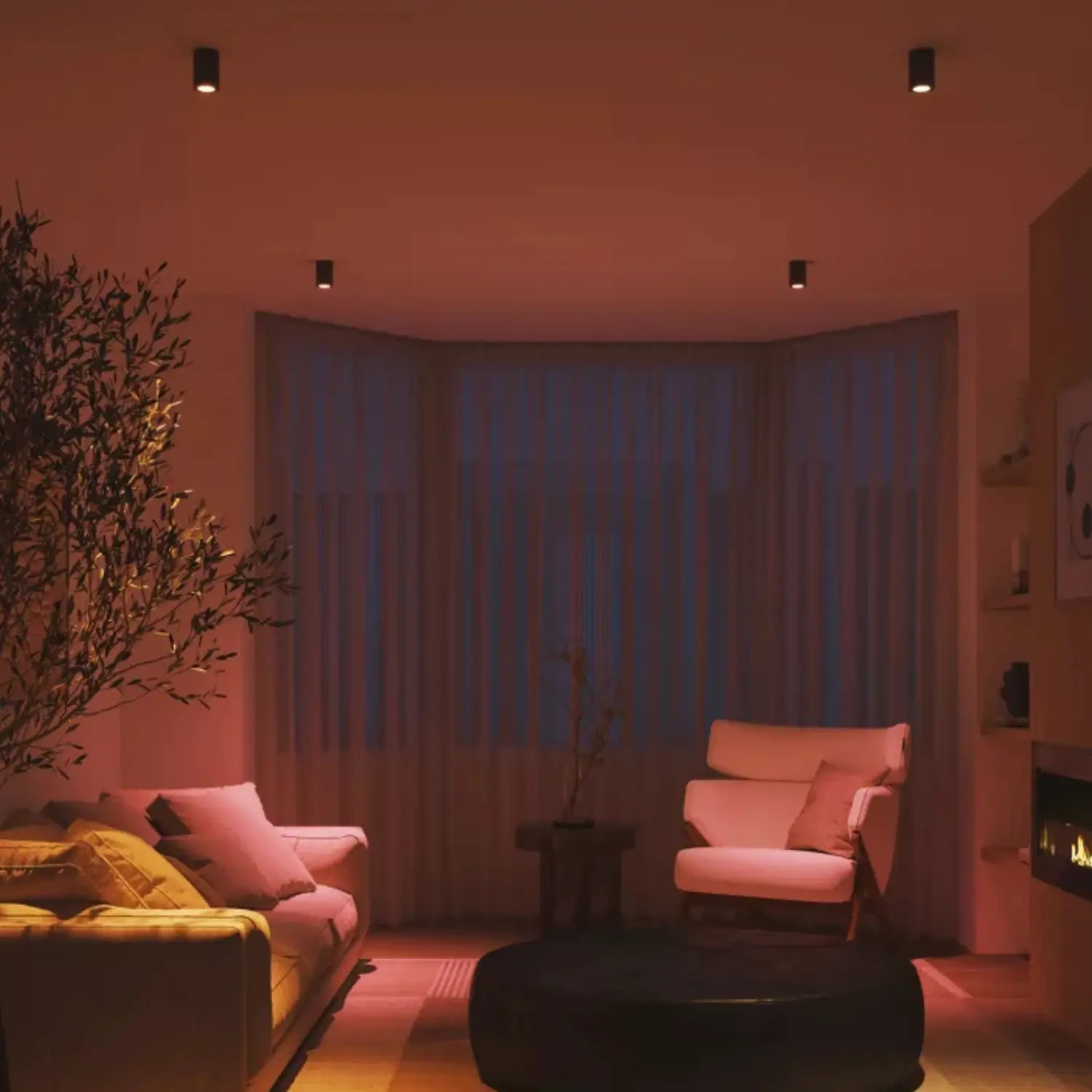 Sätt stämningen på sekunder med tre GU10 lampor från varm mysig till kall fokuserad. Välj mellan 16 miljoner färger och justerbart vitt ljus 2200 till 6500 K. Varje lampa ger upp till 345 lm och tänder direkt till full ljusstyrka för en snabb och responsiv upplevelse.