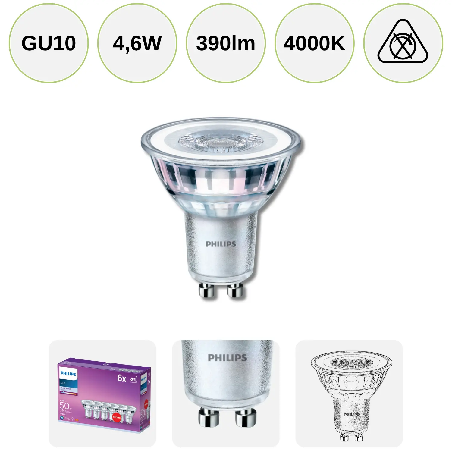 Philips LED Spot GU10 | 6-pack | 4,6W | 390lm | 4000K