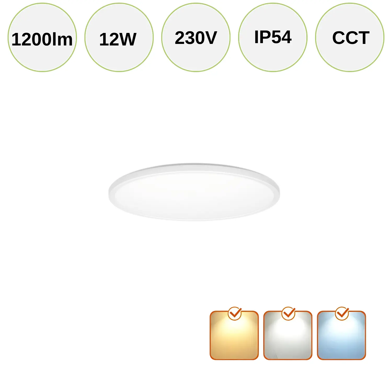 - 3CCT val: 3000K, 4000K eller 6000K