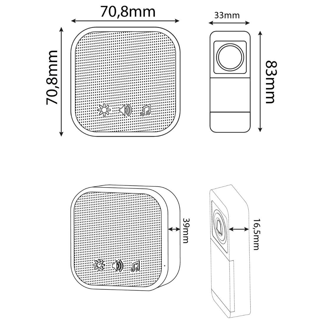| Dimensionera | Ringklokke: W39 xH39 x D16,5mm |