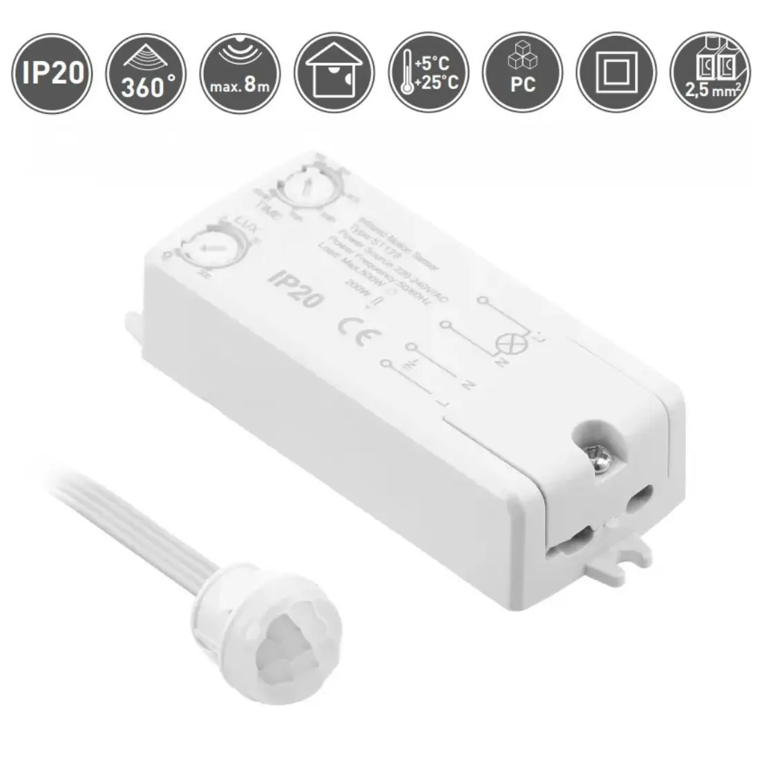 - Perfekt som PIR-sensor och inomhus ljussensor