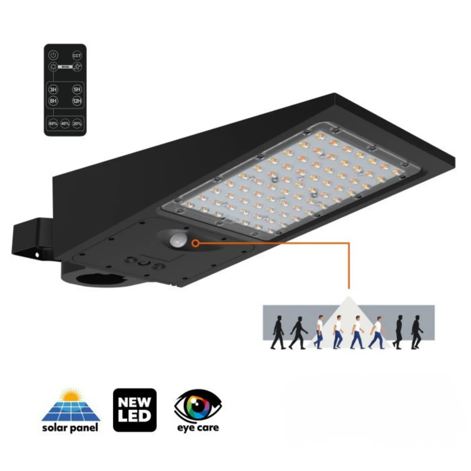 Solcellslampa för gatubelysning | 2CCT | 4800lm | IP65 | Skymnings- och rörelsesensor | STREET | Svart