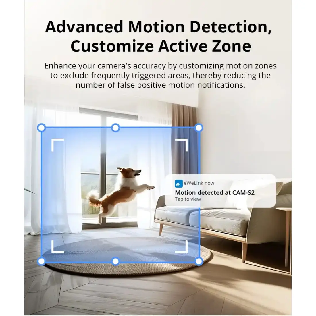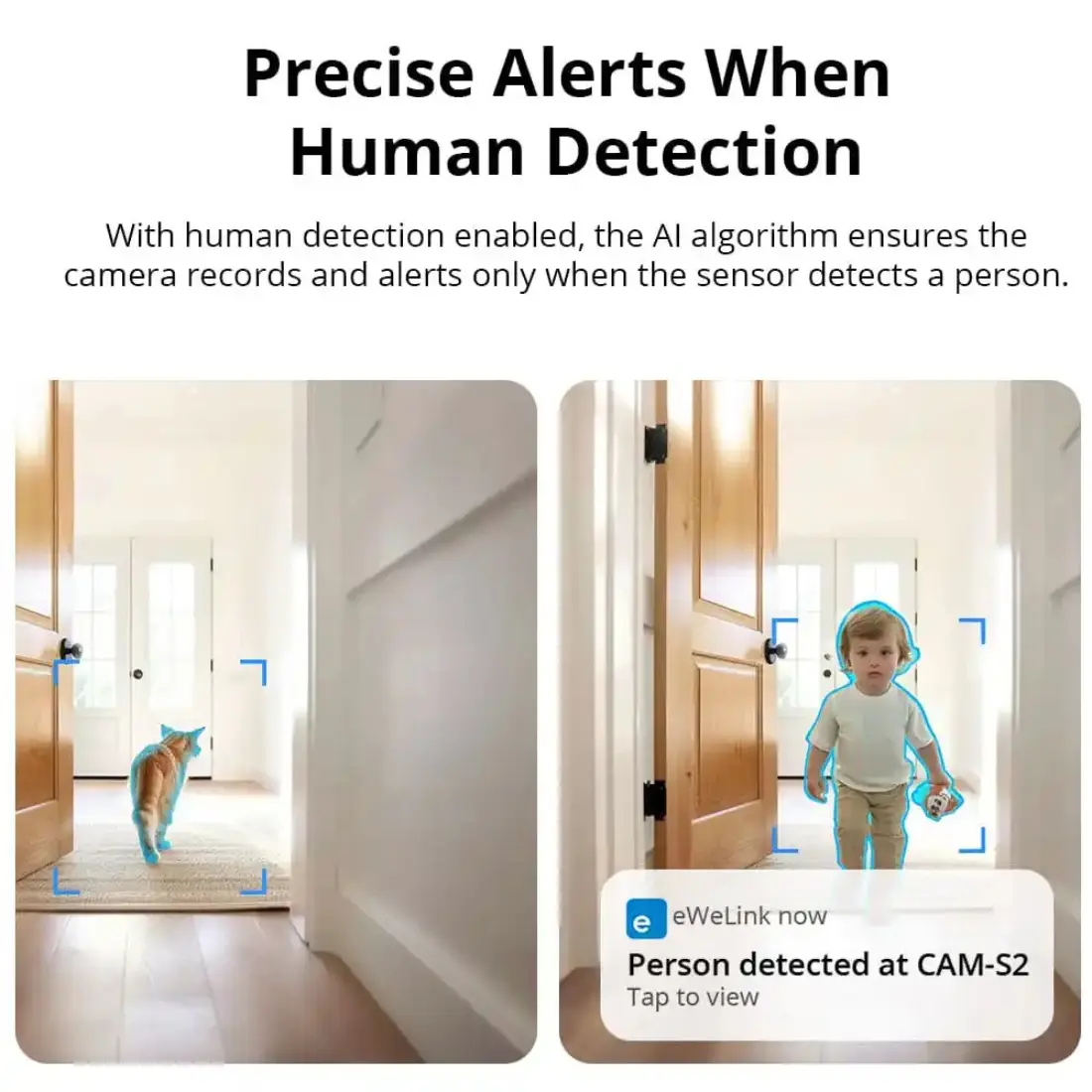 Med SONOFF Cam Slim Gen2 kan du anpassa kamerans rörelsezoner så att endast viktiga områden övervakas. Den inbyggda AI-teknologin säkerställer att kameran endast reagerar på människor, vilket minskar onödiga larm och ger dig trygghet. När rörelse upptäcks skickas omedelbart en notifikation till din app, så att du snabbt kan agera vid potentiella hot.Tvåvägskommunikation och avancerat integritetsskydd