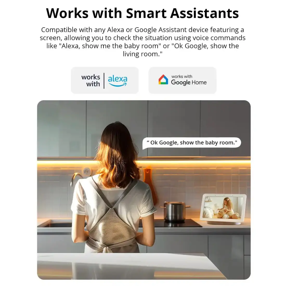 Smart Wi-Fi-säkerhetslösning med 1080P Full HD, nattfunktion och personigenkänning. Få exakta larm, flexibla lagringsalternativ och röststyrning med Alexa eller Google Assistant. Perfekt för ett smart och tryggt hem!