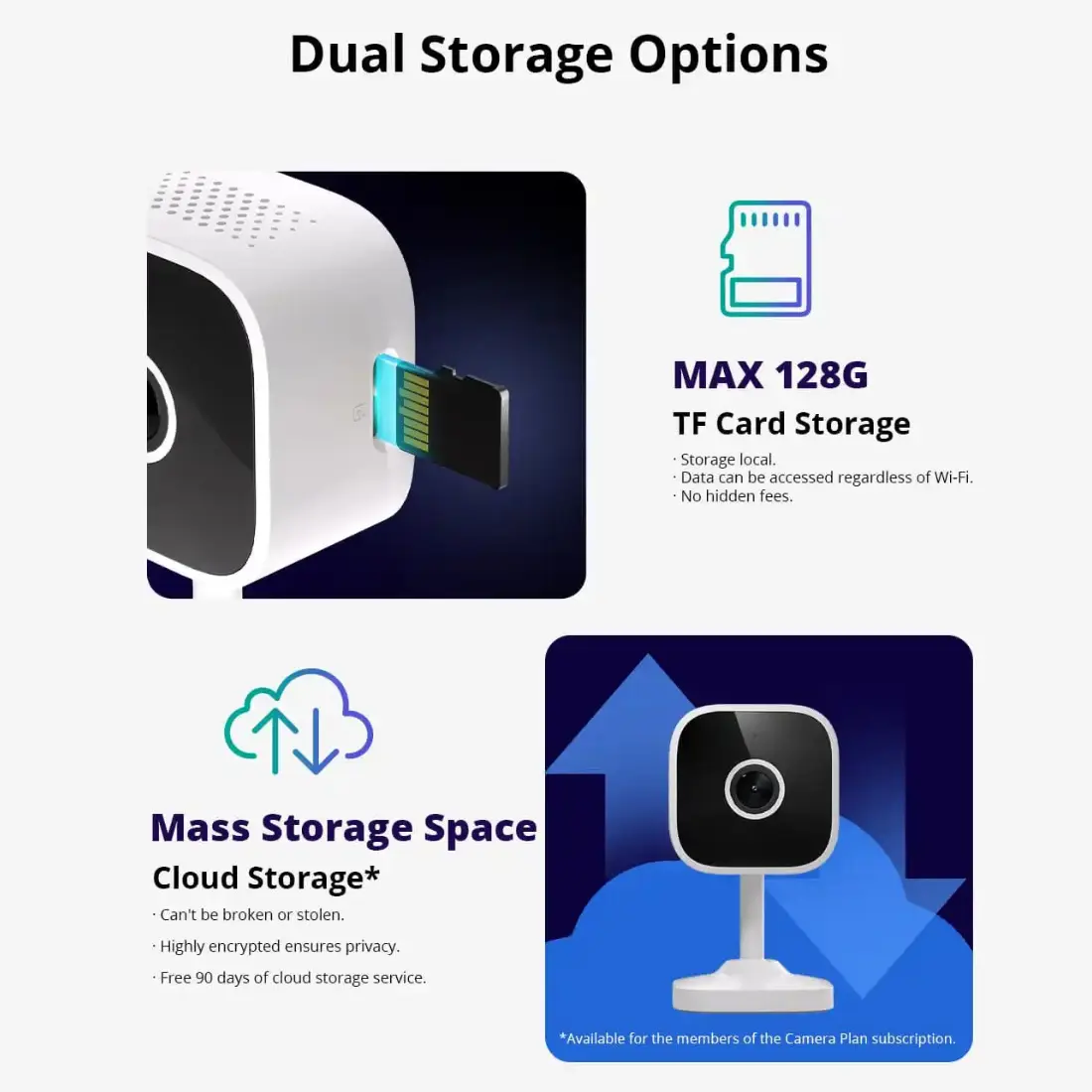 Välj mellan lokal lagring med upp till 128 GB Micro TF-kort eller molntjänster via prenumeration. Kameran ger dig flexibiliteten att spara inspelningar enligt dina behov, oavsett om du föredrar lokal eller molnbaserad säkerhet. Med NSPanel Pro -integrationen kan du enkelt kontrollera besökare och säkra ditt hem direkt från din smartphone.