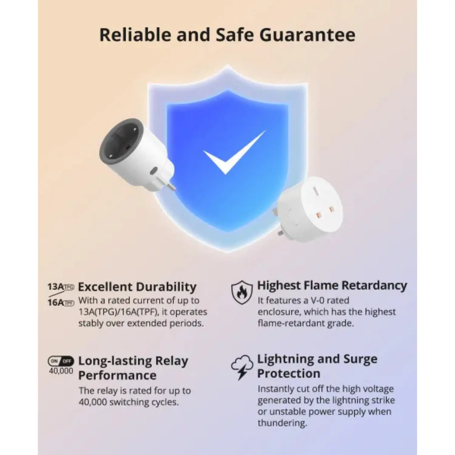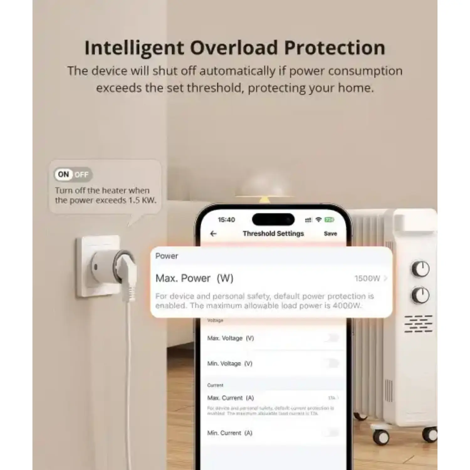 S60ZBTPF är ett av de mest avancerade smarta eluttagen på marknaden. Det har ett inbyggt överbelastningsskydd som automatiskt bryter strömmen om en för hög strömförbrukning upptäcks. Detta skyddar både dina apparater och ditt hem. Samtidigt kan du övervaka din elförbrukning i realtid via eWeLink-appen och visa historiska data för att optimera energiförbrukningen. Med det här smarta uttaget får du både säkerhet och insikt - två viktiga faktorer för ett modernt, smart hem.