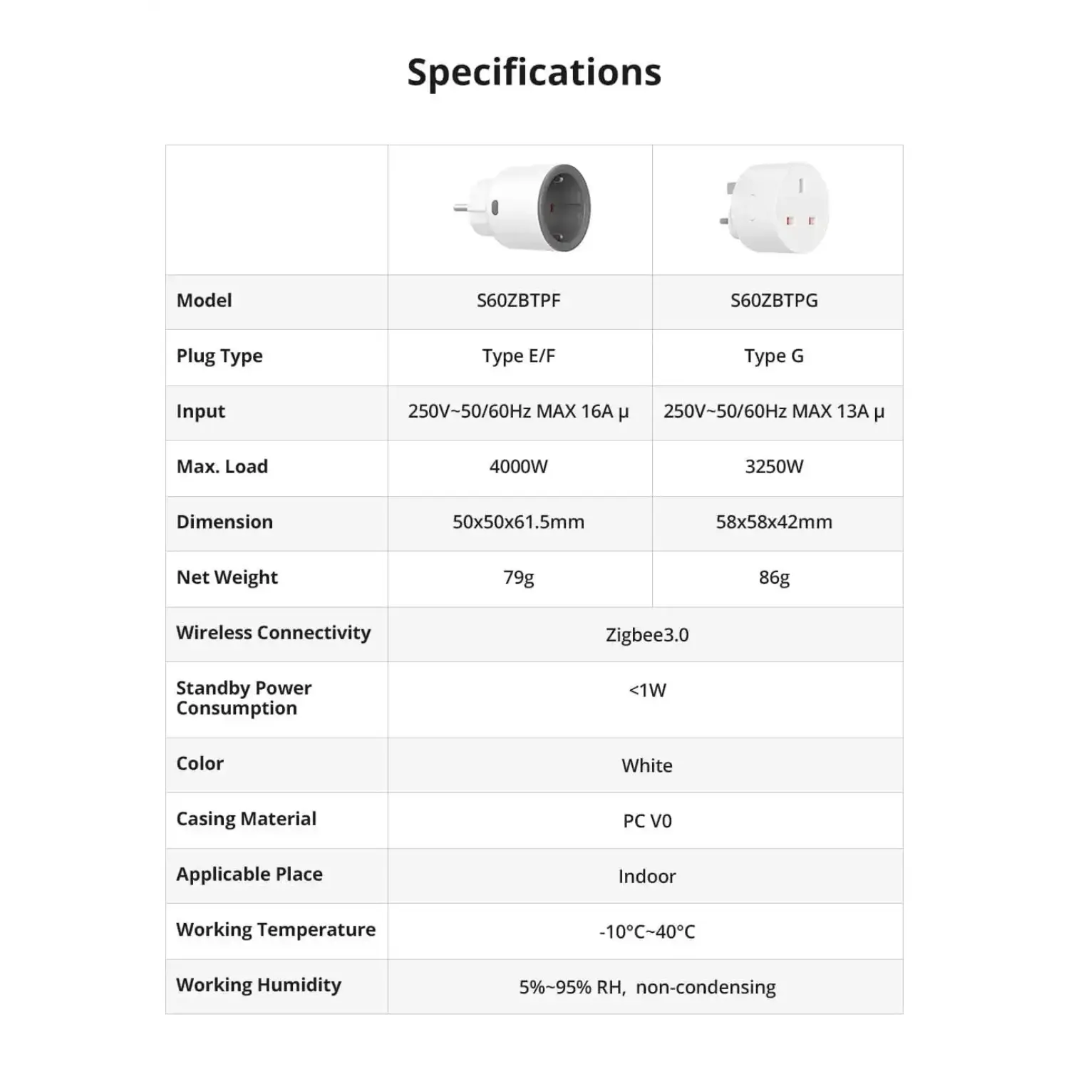 Med ett energimätaruttag som det här kan du spåra din strömförbrukning in i minsta detalj. Du kan enkelt identifiera energikrävande enheter och justera din användning för att sänka kostnaderna. Kombinationen av energimätning, fjärrkontroll och automatisering gör S60ZBTPF till ett oumbärligt verktyg för alla som vill göra sitt hem smartare och mer energieffektivt. Det här smarta uttaget kombinerar teknik och funktionalitet på ett enkelt och användarvänligt sätt.