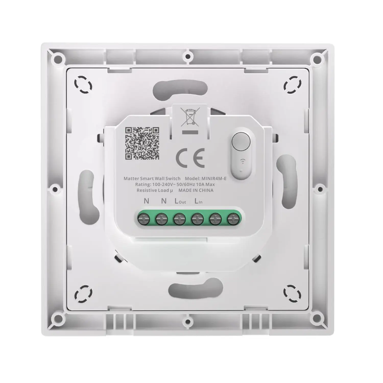 MINIR4M-E fungerar via WiFi, vilket gör det enkelt att ansluta till ditt befintliga nätverk utan behov av en separat hubb. Den kan styra belysning, ventilation eller andra enheter upp till 10A (2400W), vilket gör den idealisk för både hem och kontor. Med LAN-funktionen kan du använda strömbrytaren även när internet är avstängt. Det smarta "Detach Relay Mode" säkerställer att dina smarta lampor förblir påslagna och anslutna även när väggströmbrytaren är avstängd - så att du aldrig tappar anslutningen till dina enheter.