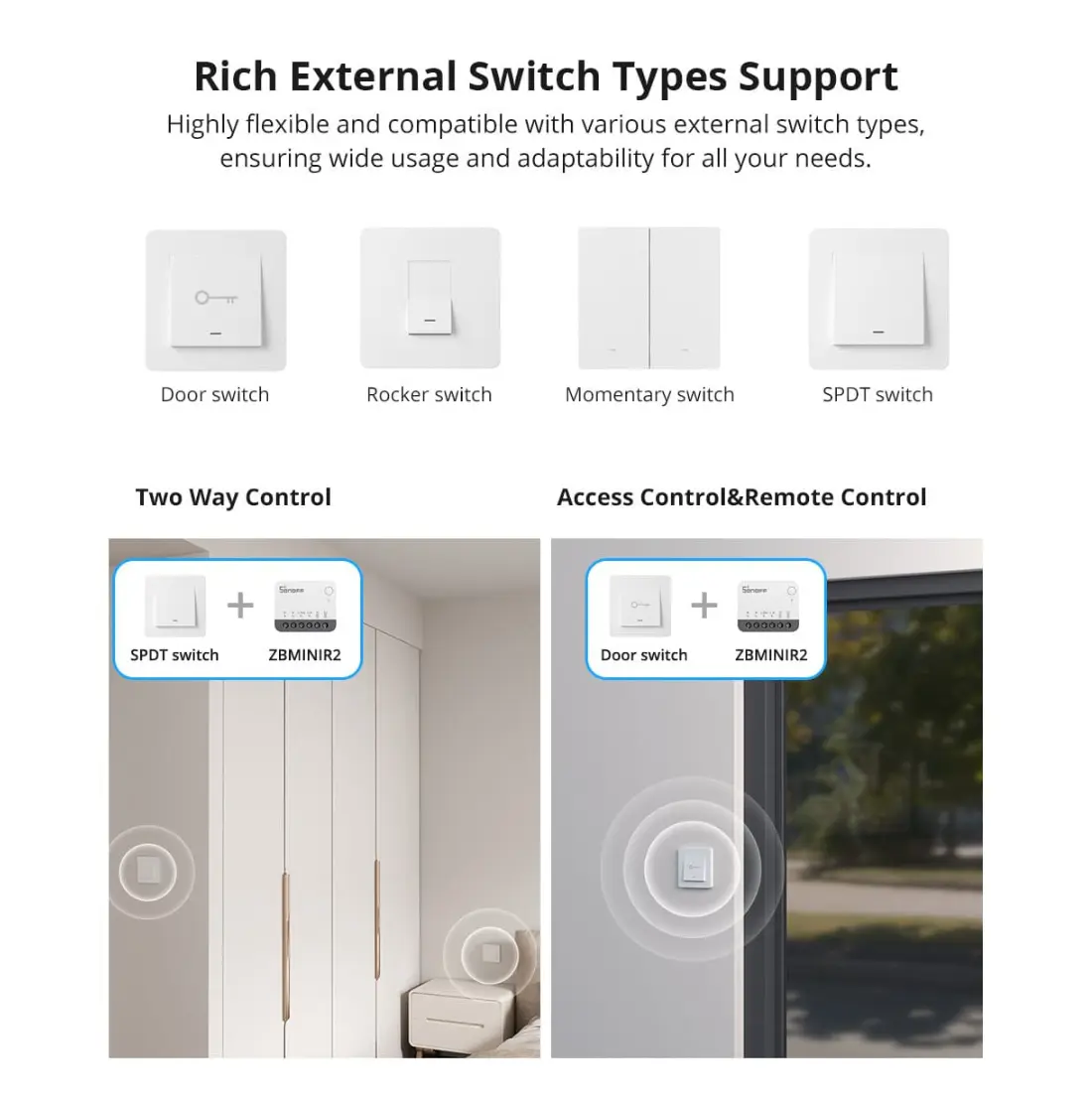 En av de mest anmärkningsvärda egenskaperna hos ZBMINI Extreme Zigbee Smart Switch är dess kompatibilitet med externa kontakter. Oavsett om du använder en tryckknapp, dörrkontakt eller en vippströmbrytare ger denna switch dig möjligheten att enkelt anpassa styrningen efter dina behov. Det innebär att du kan integrera den i din befintliga installation utan komplicerad installation.Utökad Zigbee-signalräckvidd