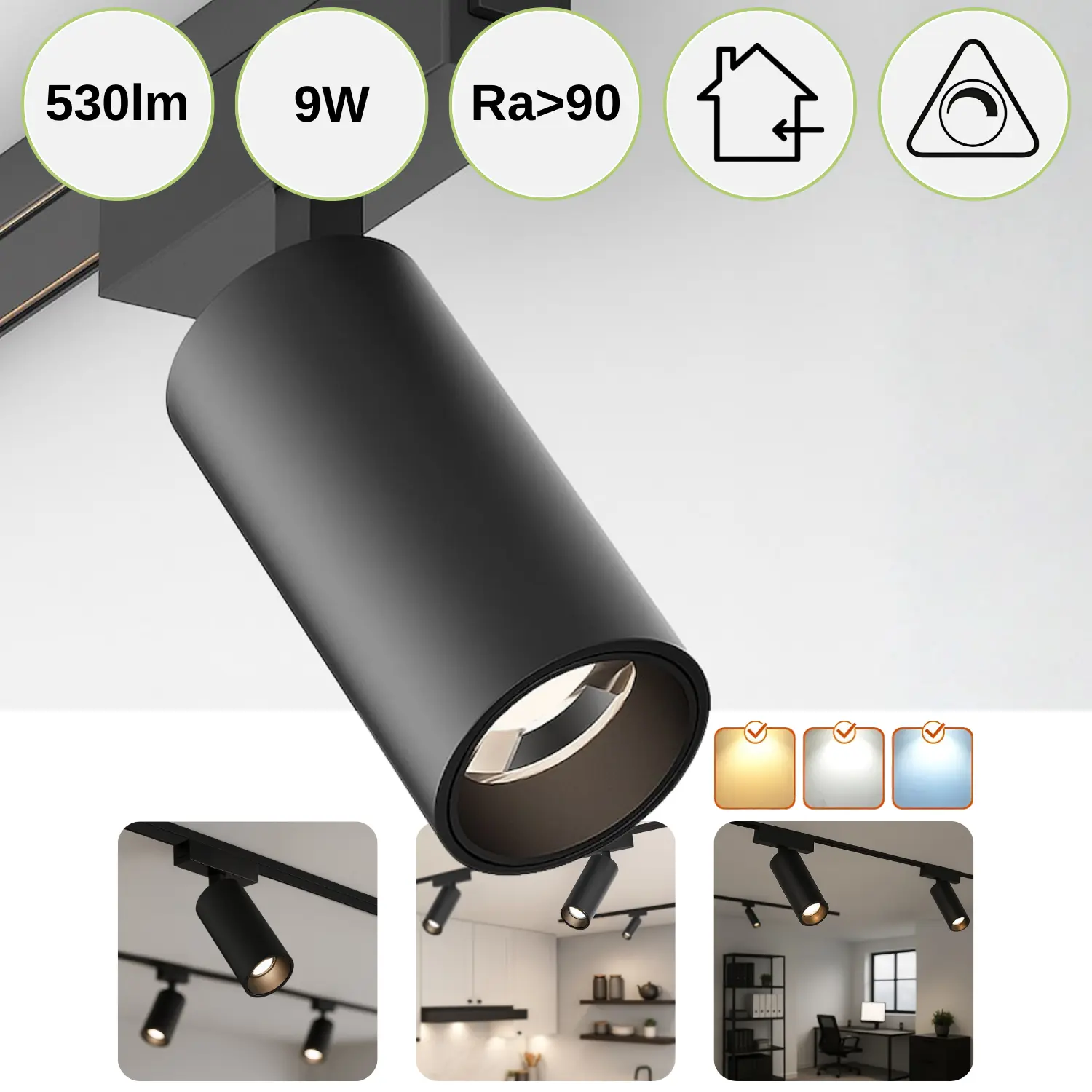 Produktinformation "Spotlampa för SlimTrack strömskenesystem | 24V | CCT | 530lm | 9W | Svart"