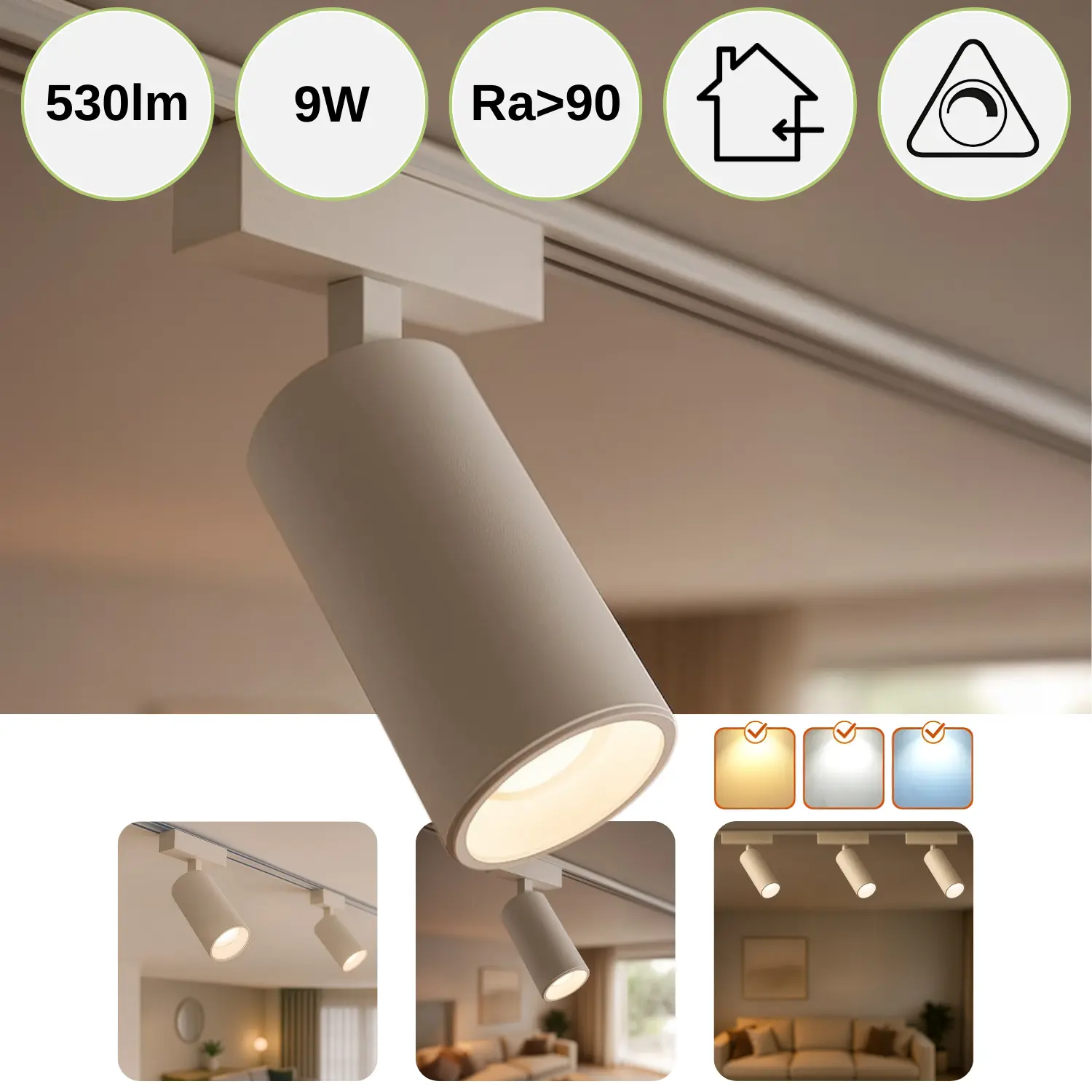 Produktinformation "Spotlampa för SlimTrack strömskenesystem | 24V | CCT | 530lm | 9W | Vit"