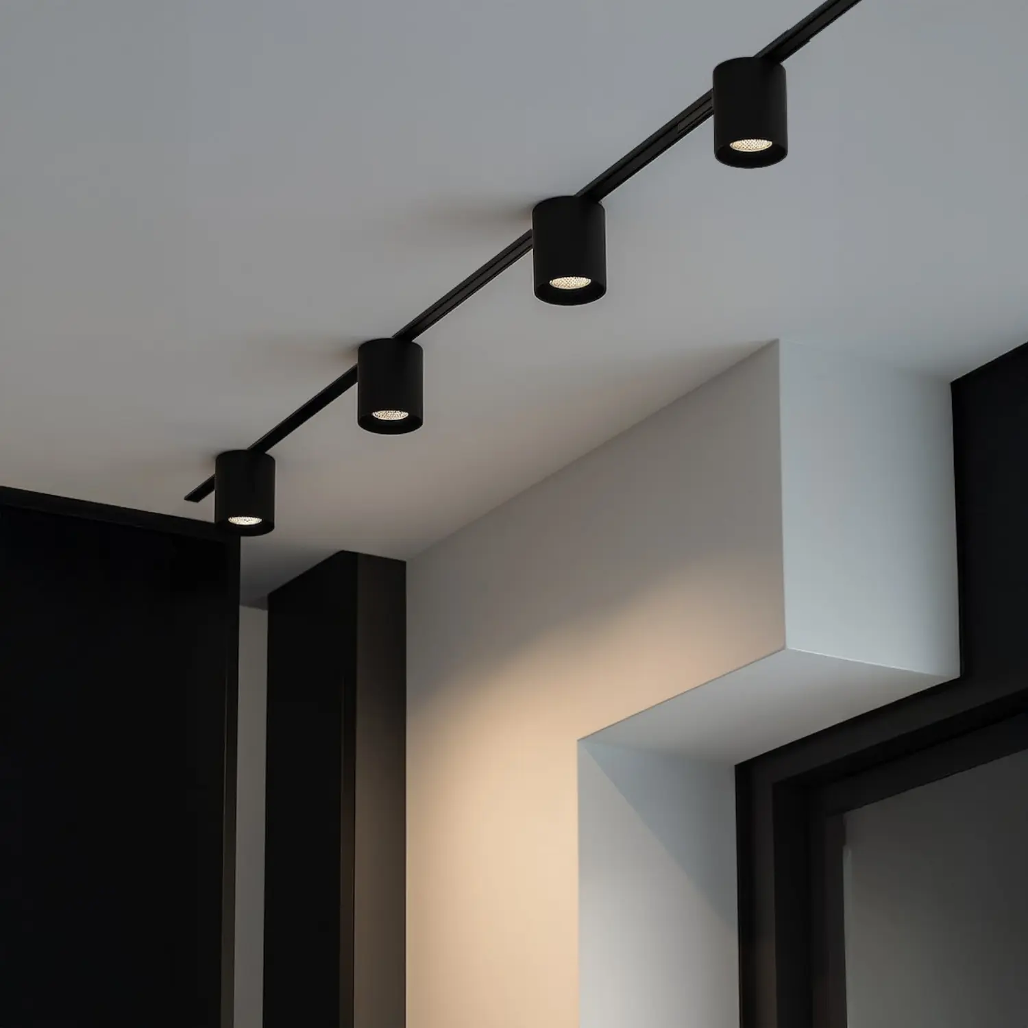 SlimTrack-systemet gör det möjligt att placera och flytta strålkastarna direkt i strömskenan så att belysningen kan justeras kontinuerligt. De åtta strålkastarna ger en jämn och effektiv ljusfördelning och kan användas både som grundbelysning och som riktat ljus över specifika områden. Med CCT-funktionen kan färgtemperaturen justeras så att den passar både arbetsuppgifter och mer avslappnade miljöer.