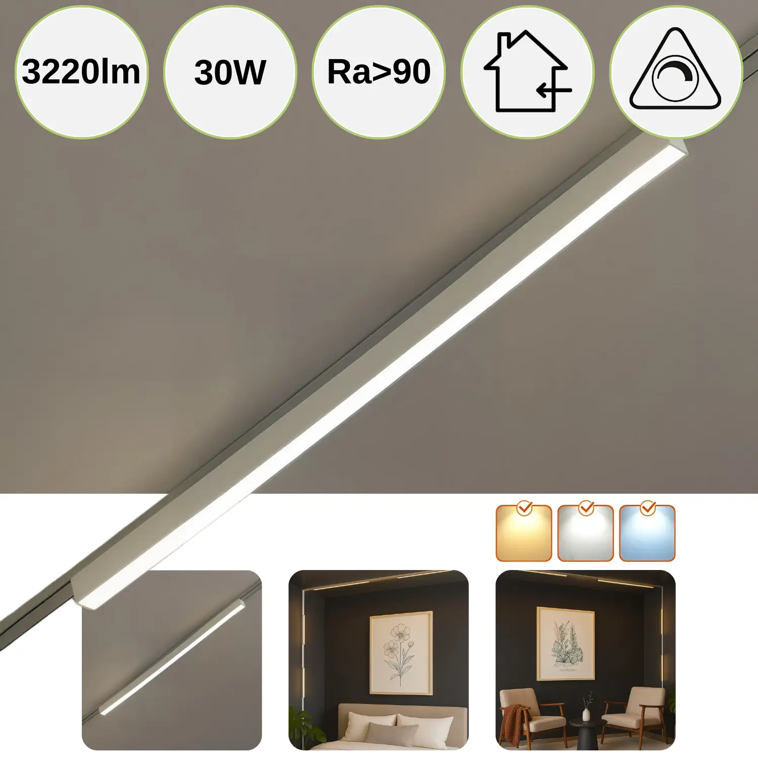 Strömskenor för SlimTrack strömskenesystem | 91cm | 24V | CCT | 3220lm | 30W | Vit