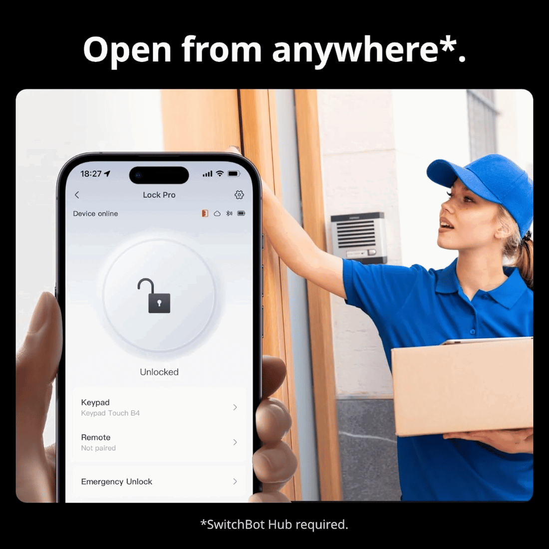 Med SwitchBot Lock Pro får du ett smart dörrlås som gör din vardag enklare. Det kan enkelt integreras i ditt befintliga smart home-system och fungerar med WiFi Bridge för fullständig fjärrstyrning. Du kan låsa och låsa upp direkt via appen, vilket innebär att du aldrig behöver oroa dig för nycklar igen. Installationen är enkel och ditt befintliga dörrlås behålls – en perfekt lösning för alla bostäder.