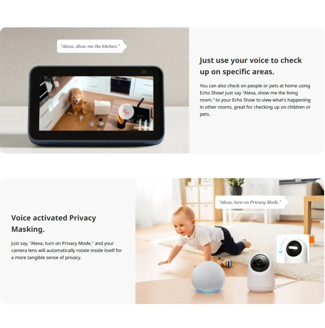 SwitchBot Pan/Tilt Cam 3K ger dig full kontroll över din integritet. Kameran har en fysisk Privacy Mask-funktion som döljer linsen när du önskar det. Data är AES-128-krypterade och laddas upp till molnet för maximal säkerhet. Aktivera integritetsfunktionen med din röst via Alexa för en intuitiv och användarvänlig upplevelse.