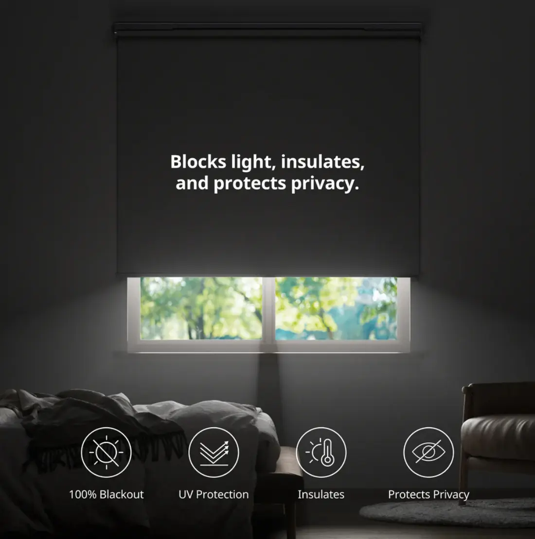 Den inbyggda DC-motorn säkerställer nästan ljudlös drift med ljudnivåer så låga som 30 dB i viloläge. Gardinen stöder också procentbaserad kontroll, så att du kan justera exakt hur ljuset ska falla in i rummet.Integration med Matter och smarthome-enheter