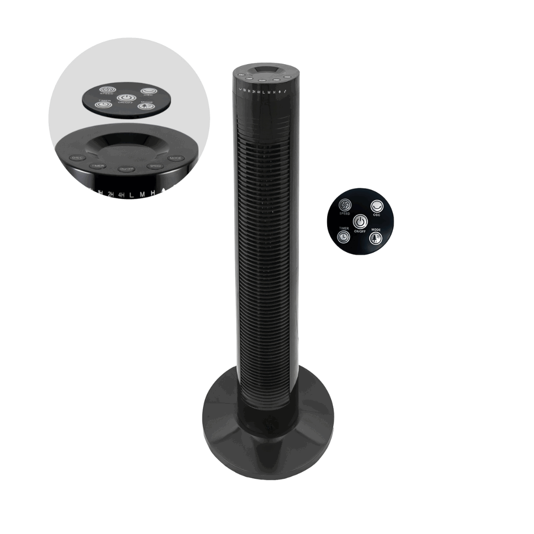 Tornfläkt med fjärrkontroll | Golvfläkt | 45W | Svart | HOORN