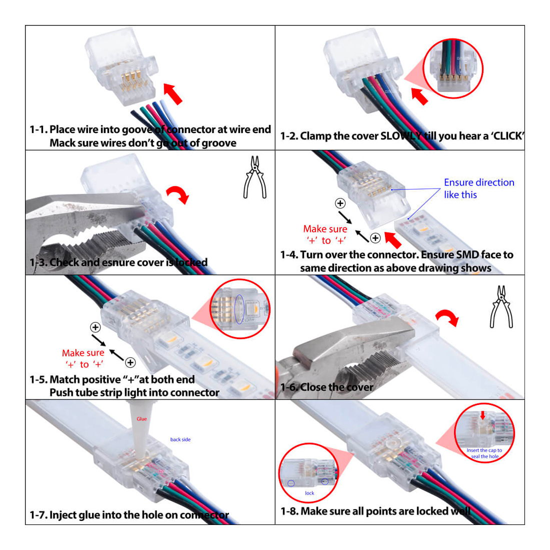 Trådkontakt RGBW 4 i 1, 12mm, HIPPO