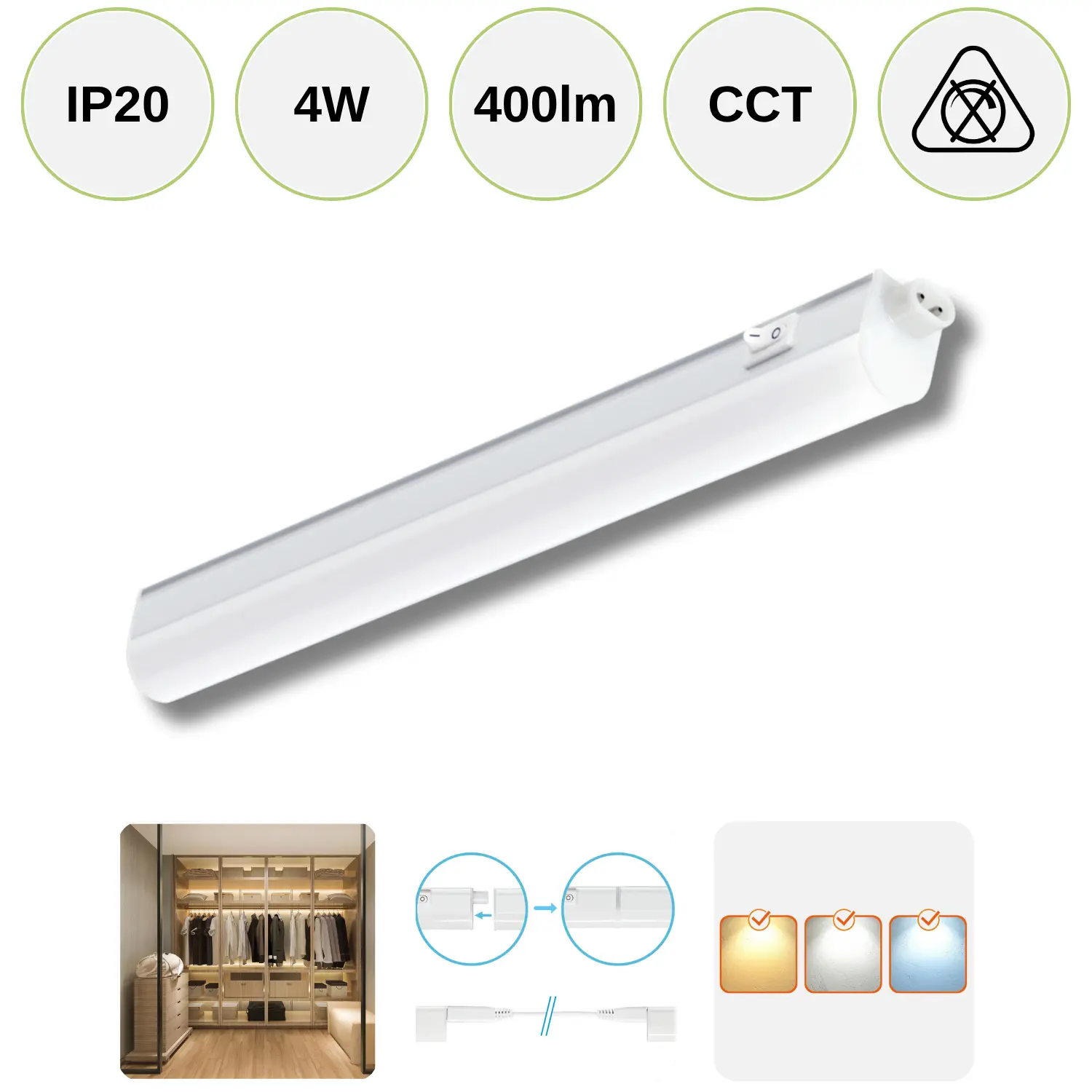 Underbelysning | 4W | 30cm | 400lm | CCT | Vit