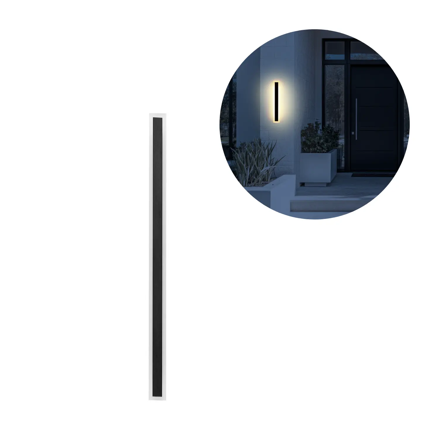 Modern utomhusvägglampa som förenar snygg form med praktisk funktion. Den klassiska svarta färgen och den avlånga, slanka profilen (1500 × 90 × 45 mm) passar fint för både nyproduktion och renovering. Lampan är tillverkad av metall och akryl för ett robust intryck, och IP54 ger skydd mot regn och damm – perfekt vid entré, längs gångar eller på terrass. Den breda spridningsvinkeln på 120° ger jämn fasadbelysning som både skapar trygghet och ett trevligt välkomstljus.