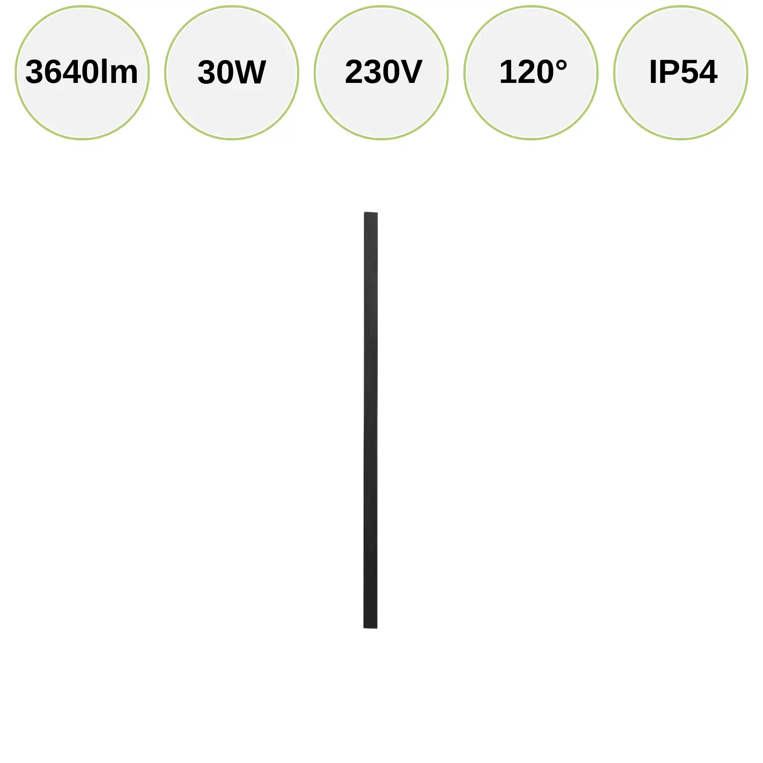 - Slankt, avlångt format: 1500 × 90 × 45 mm, enkel och snabb montering på 230 V