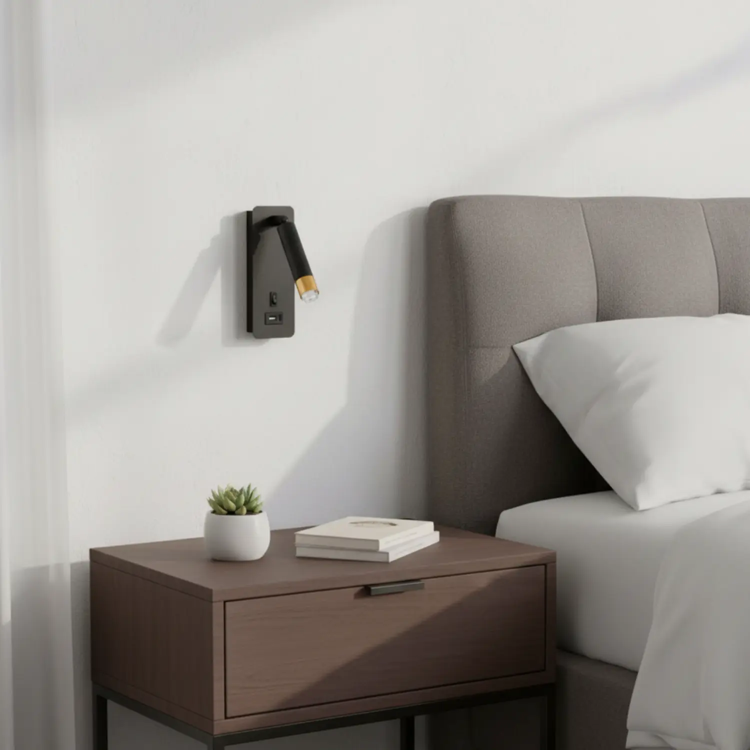 Vägghängd sänglampa med USB uttag för bekväm laddning